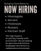 We are hiring for the following openings: Night Audit - full-time - 11pm-7am Security Officer - part-time - Friday & Saturday 6pm-4am Hotel Maintenance/Houseman - part-time - 3-4 days morning shift, weekends are a must 9am-5:30pm